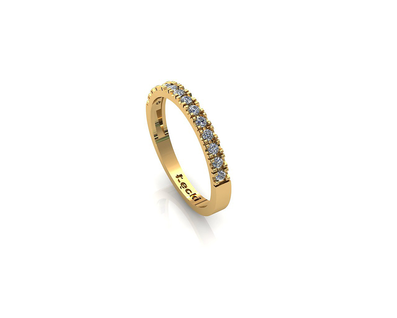 Pierścionek , obrączka z cyrkoniami o łącznej masie od 1.70 gr do 2.00 gr w zależności od rozmiaru ,wykonany z żółtego złota złota.